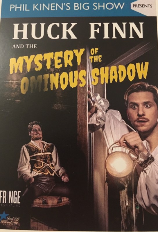 Phil Kinen and his Huck Finn cycle have gotten a lot of buzz from the KC FRINGE festival, and I finally got a chance to see why. Phil has created an amazing world where Huck Finn, rather than the creation of another author, is his own person, and is desperately trying to forget his old ways to become more sophisticated and educated. He is moving forward in his life after trying to leave his uneducated self behind, but uses his stories from childhood to gather money when he needs it. On top of this, he is now faced with working with a rival, Silas Condesent, who turns out to be more than he is just on the surface, who pulls Huck Finn / Harley Fordge to reveal more about himself. Fordge and Condesent’s relationship is delightfully complicated and volatile throughout the work.