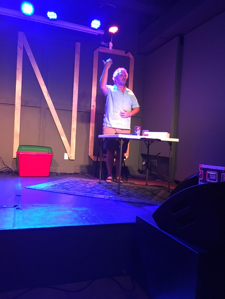 On Friday, August 24th, the KC Public Theatre held its season opening party and fundraiser. It was a delight to see Scott Cox’s And God Did Shake the Pear – Shakespeare for Everyday Living as part of the evening. A favorite of the Kansas City Fringe 2018, this is a one man show that delves into what makes Shakespeare beautiful, adding humor, as well as Cox’s experience in teaching Shakespeare to students in education and the prison system. His show is a beacon of hope for a better future, that words and creating theatre together can change minds and resolve differences. Though it has its serious underpinning, this is most definitely a comedy, interspersed with a mermaid puppet playing the role of his mother and reading from a phone book. This show has been featured around the Kansas City area as a Fringe showcase, so please see it if you can. It is a beautiful and moving work, and a perfect choice for an evening dedicated to raising funds for a theatre company dedicated to bringing live and free theatre to the Kansas City area.